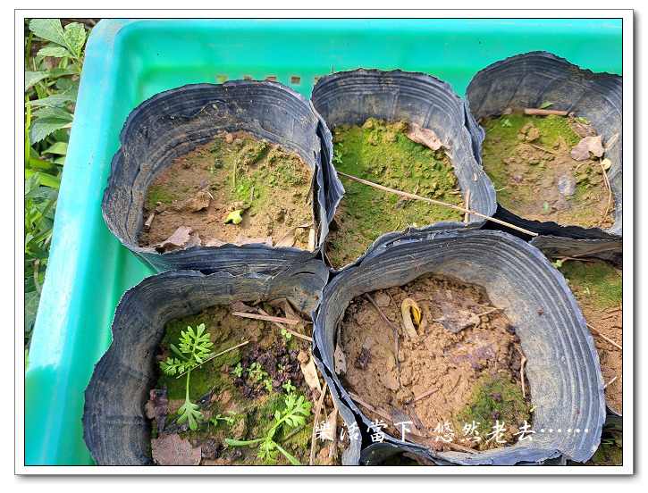 再將家裡第二次育苗的小苗帶到田裡,讓它們能接收到較充足的陽光。