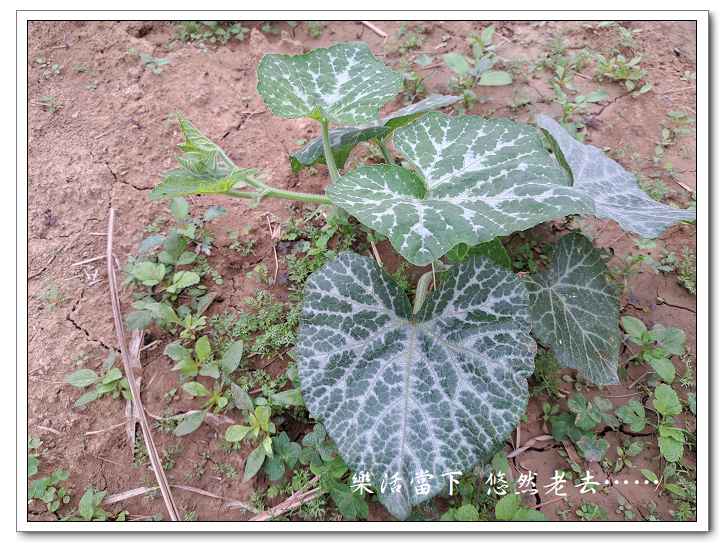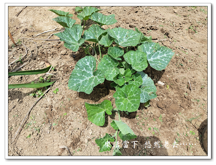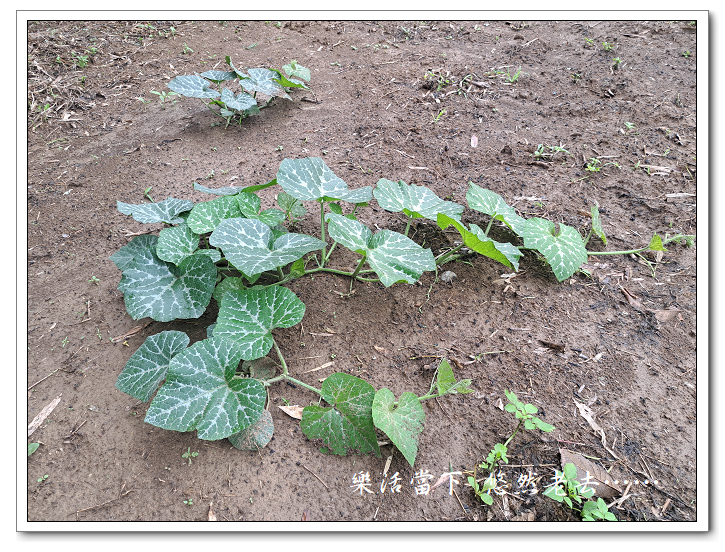 最後種的二株南瓜,南瓜藤已經開始往前伸展,看起來長得也不錯。