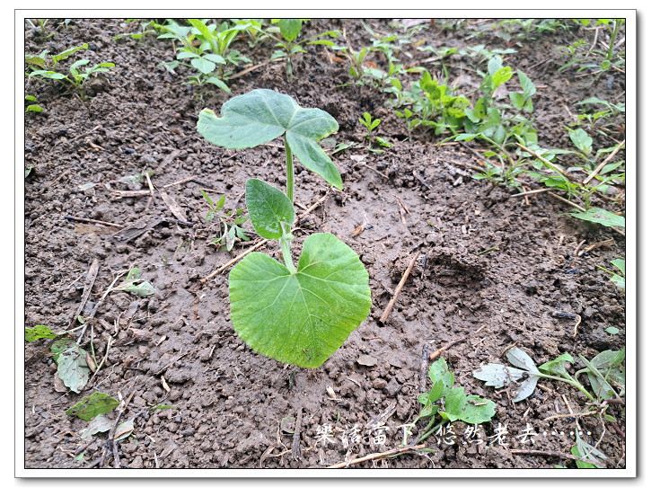 又冒出了一株小南瓜苗,先後發芽時間實在是差太久了。