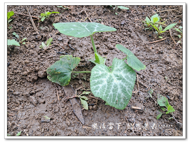 現在天氣熱,蝸牛很多,將小南瓜苗種下很擔心它的安危,幸好沒事。