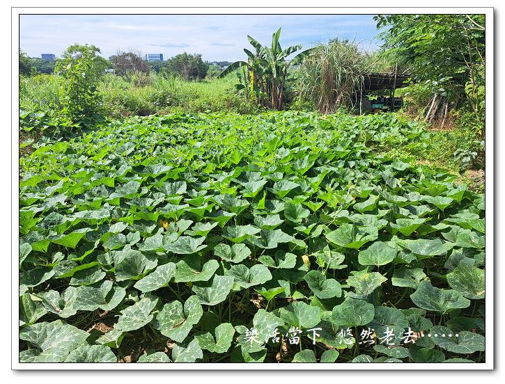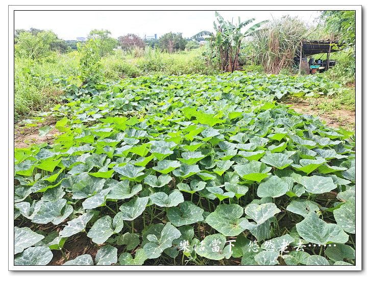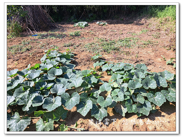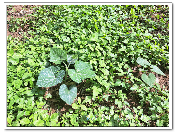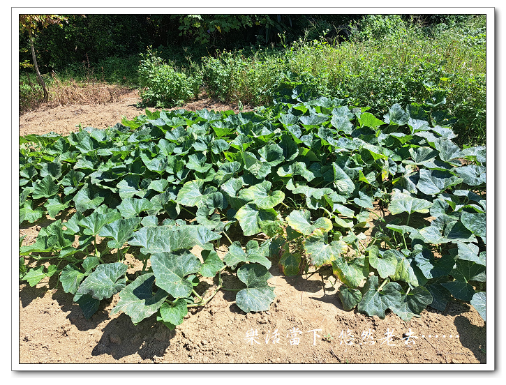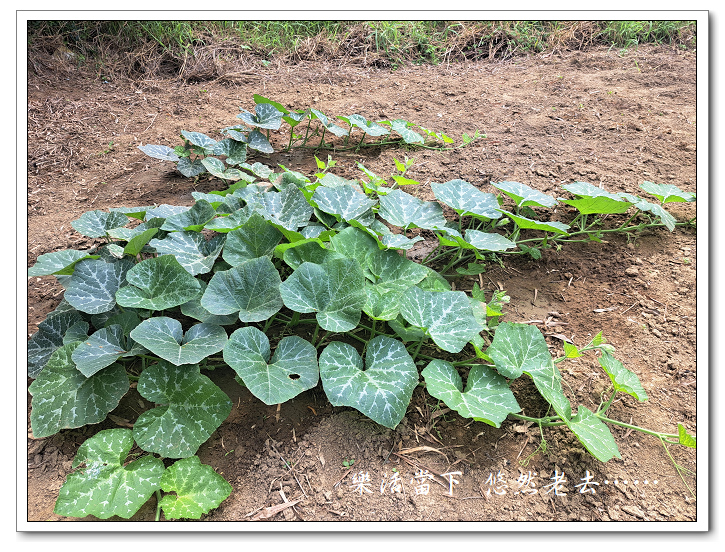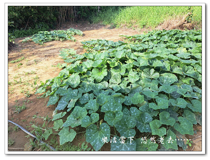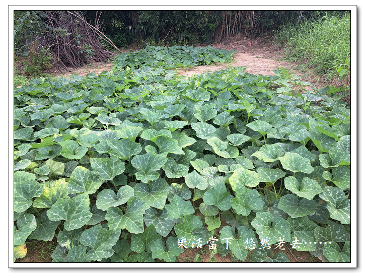 二十餘坪供南瓜生長的地面,現在幾乎已經被南瓜的藤葉佔滿,生長得還不錯,但願南瓜也能長得多。