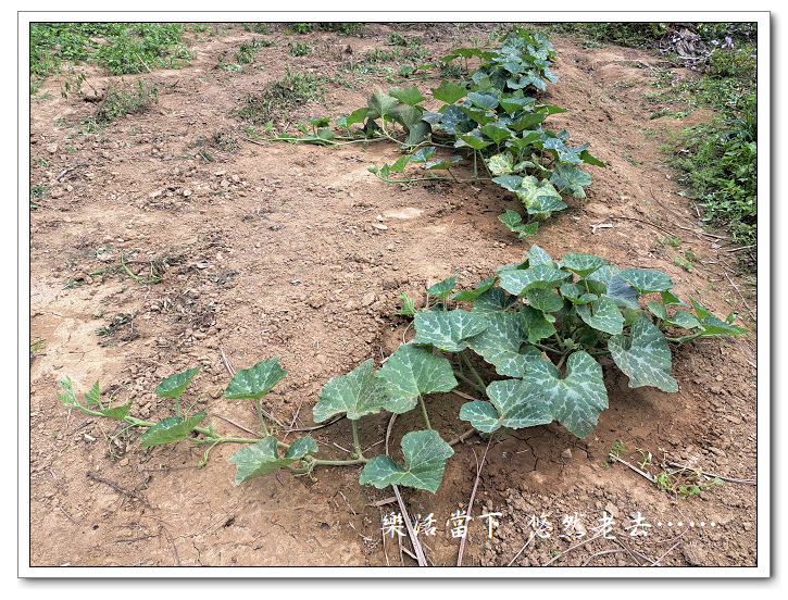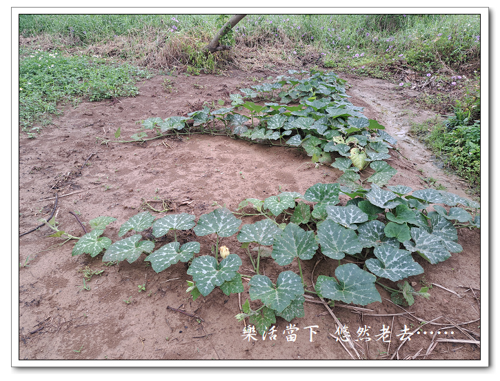 現在不只南瓜藤往前伸展,而且長了一些側蔓,所以看起來不再只有單純往前的一條南瓜藤。