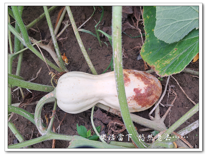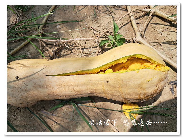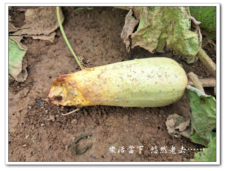 有顆已經算是長得不小的南瓜卻爛了一大半,可惜,不過不只是這一顆,之前也有好幾顆,只好採下當肥料。