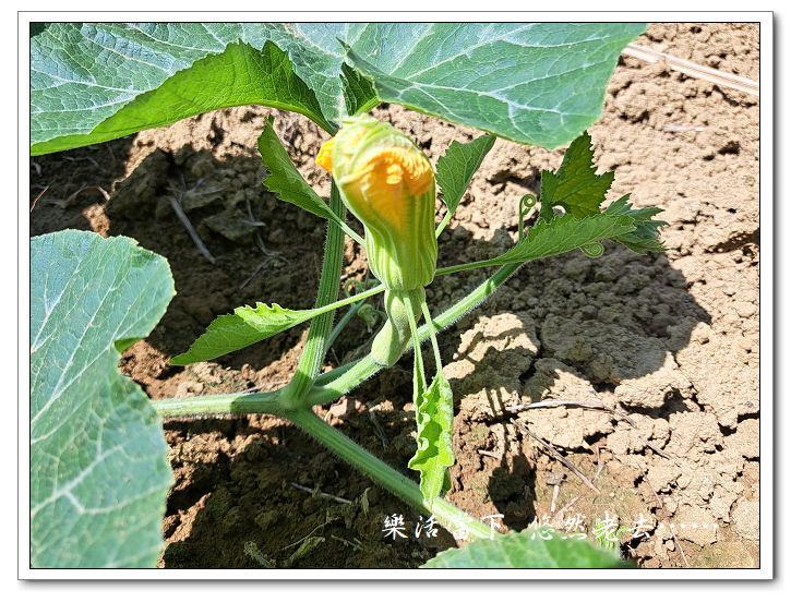 後種的二株南瓜昨天開了第一朵母花,但無法確定是否授粉成功,只能等待幾日後才能有答案。