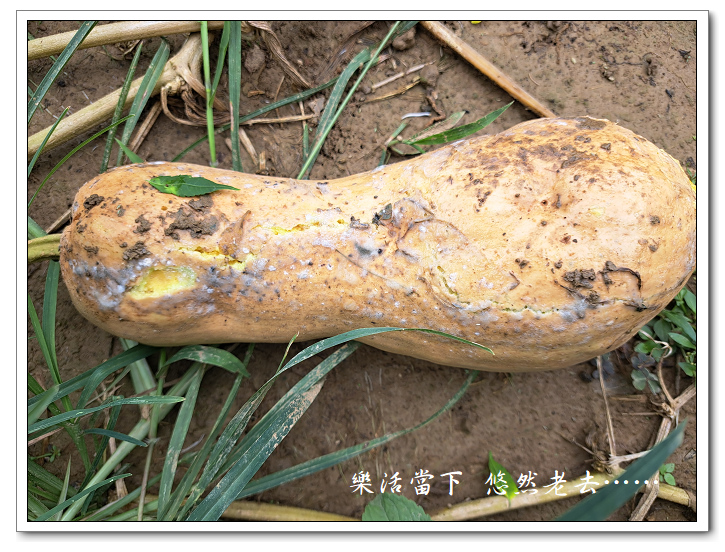 本來以為南瓜再分二次就可以全數採收完,沒料到接連下著幾天雨,而且還是大雨,只能以一個慘字來形容。首先一顆由上往下看毫無異狀的南瓜,將它翻動後看到的是接觸地面的地方已經爛,只能當肥料。