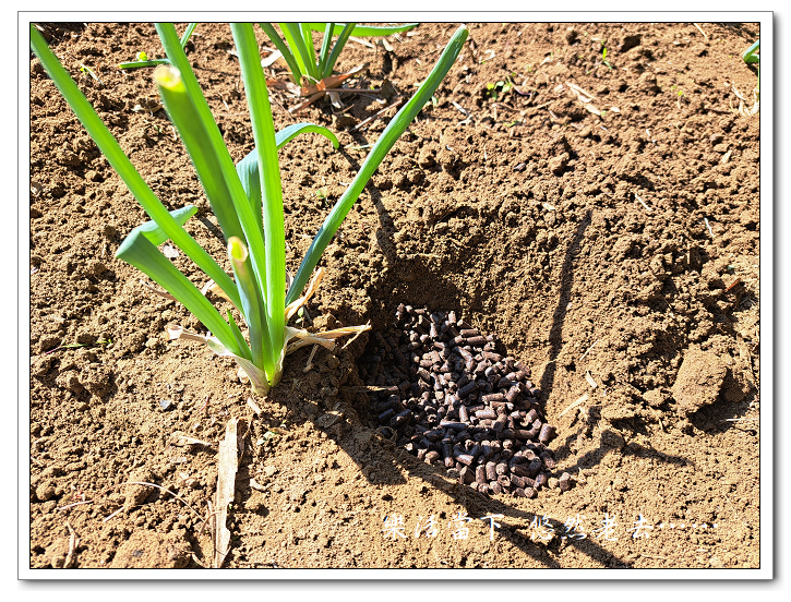 草開始發芽長出,進行除草並施放一點肥料,希望蔥能長得好。