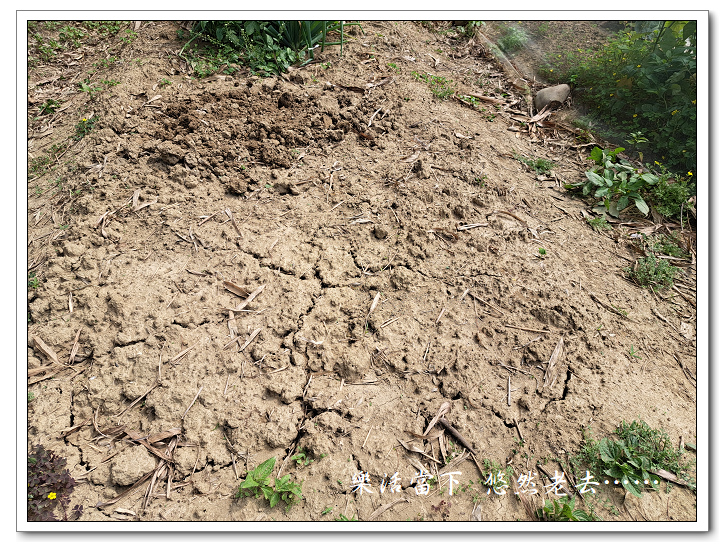 原本這小塊區域已經鬆過土,但經過下雨後土又變得緊實,只好再進行鬆土。