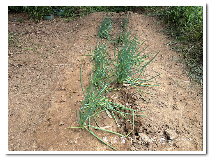 這次種的蔥只少少的採收了一點,大部份都因連續幾次大雨後而瀕臨死亡,現在天氣熱蔥停止生長,就這樣暫且留著,等入秋天氣稍涼後再來重新種植。