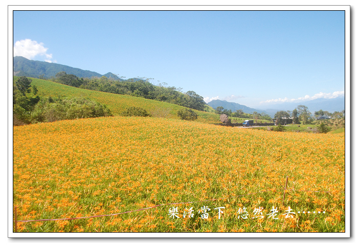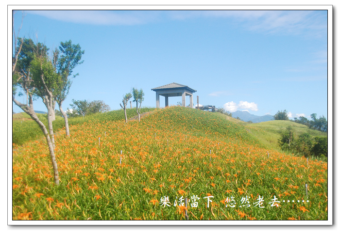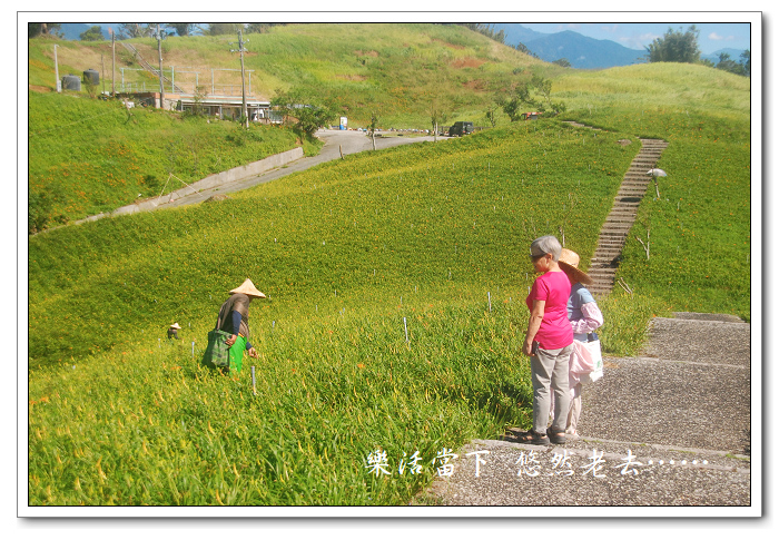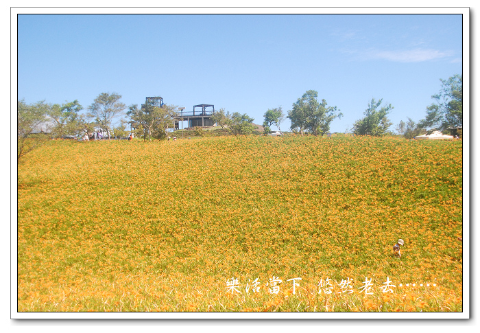 農莊前的小山丘上有一片金針花,但這些金針花好像有點故意吊人胃口似的,有花但不密集,視覺上色彩有點淡,令人有點愛卻又只想點到為止。