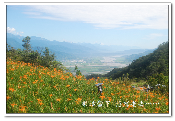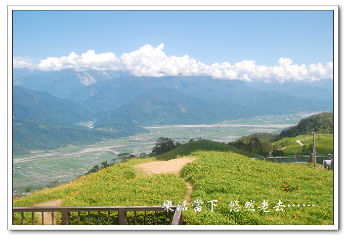 除了金針花之外,透過山谷凹處也可以觀賞山下的花東縱谷風光。