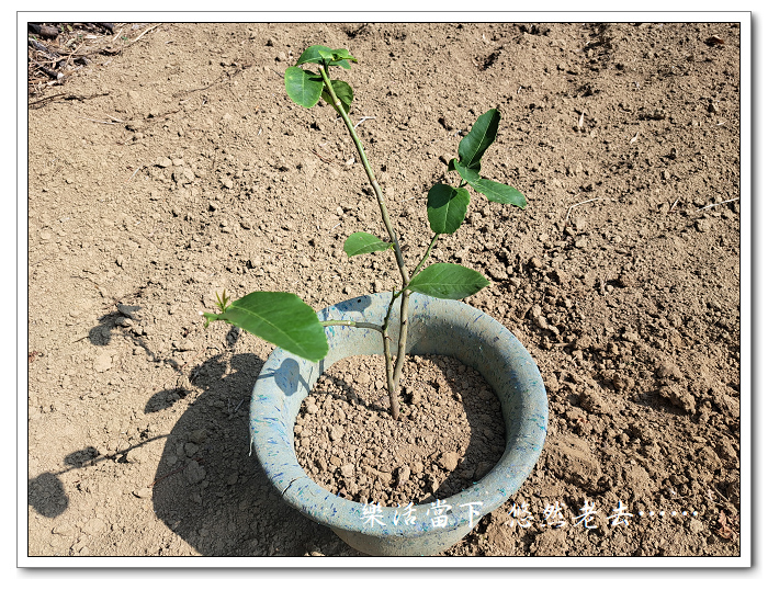 即來之則安之,但要將檸檬樹苗種在何處較適當呢?思考了幾天仍難以有答案,只好先將它安置在盆中,就可以慢慢琢磨再來做決定。可能不會讓檸檬在盆中太久,也為了到時移植的方便,所以讓它暫時生活在一個小盆中。