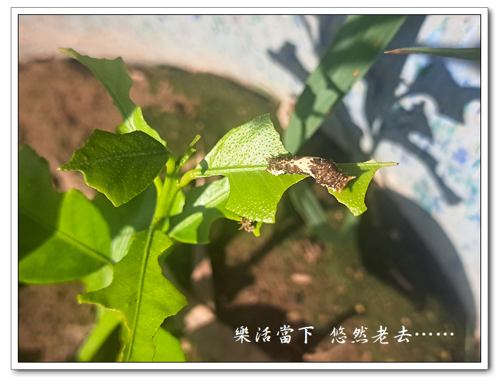 最後整株小檸檬樹的葉子被吃得只剩下不到半片,幾隻大小不同的鳳蝶幼蟲都來擠在這半片葉子上,接下來要怎麼辦呢?半片葉子這麼多隻要吃,每隻只要啃個幾口就沒了,啃完以後要吃什麼呢?鳳蝶媽媽怎麼沒考慮這個問題而一次下這麼多蛋在這株上呢?想幫牠們一下忙卻又無從幫起,使不上力、無可奈何。