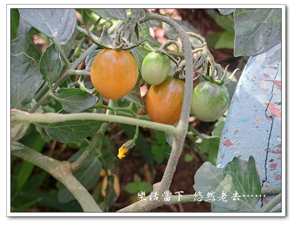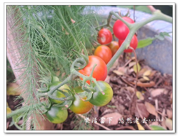半個月前幾顆橘紅的番茄,本以為紅了會被小鳥吃掉,幸好整串掉進了草堆中,最後落入了我的手中,姑且不論多或少,幾經摧殘的番茄總算有了收穫。