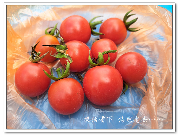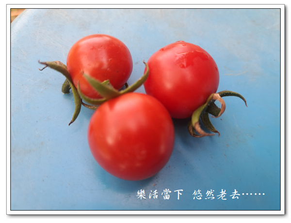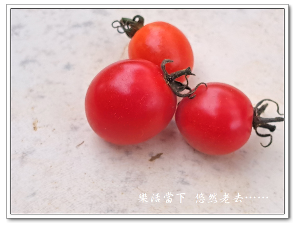 過了二天番茄更紅了些,今天要來品嚐味道如何。