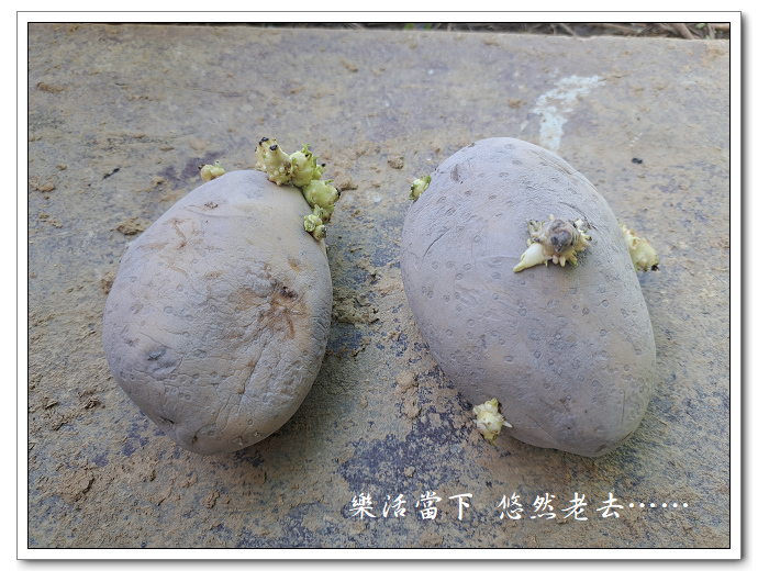 永琪兄給了我二顆開始有發芽跡象的馬鈴薯,拿回來後大約放了一個多月,直到馬鈴薯新芽已經很明顯,才不得不考慮要來將它種下。