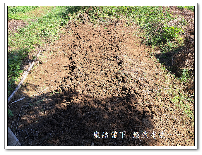 鬆土了一小區塊,將九塊馬鈴薯在這小區塊上種成一直排。