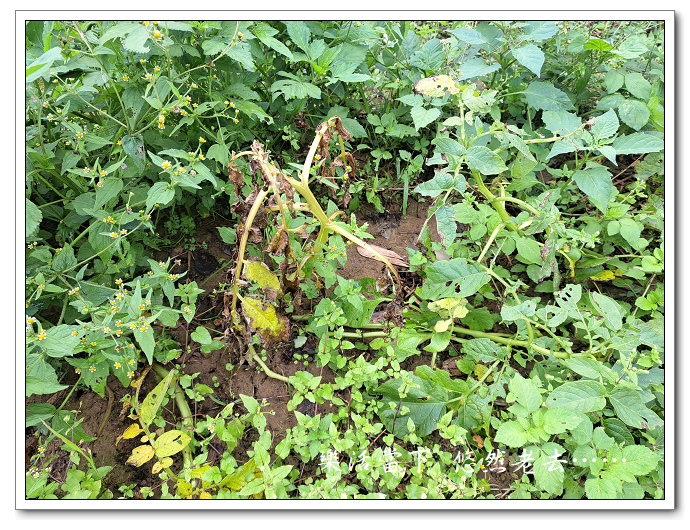發生了意外,半個多月沒能到田裡來,半個多月沒澆水,料想馬鈴薯大概都枯死了,沒料到不只沒有枯死而且長得比半個月前大很多,真是令人大感意外。