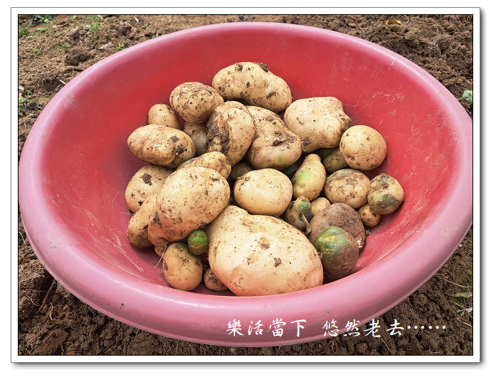 這次的馬鈴薯收穫差強人意,大小全拾起,小顆的留著下次再拿來種。