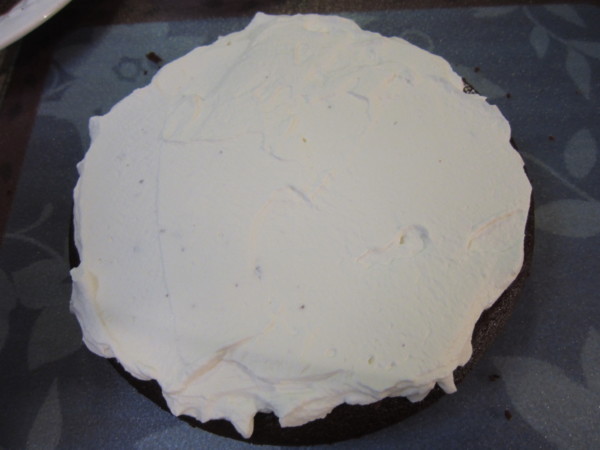 7. 將鮮奶油塗在切平的蛋糕上