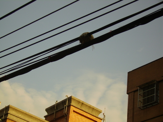 竟然是{電線}上,注意~!不是電線杆上喔~