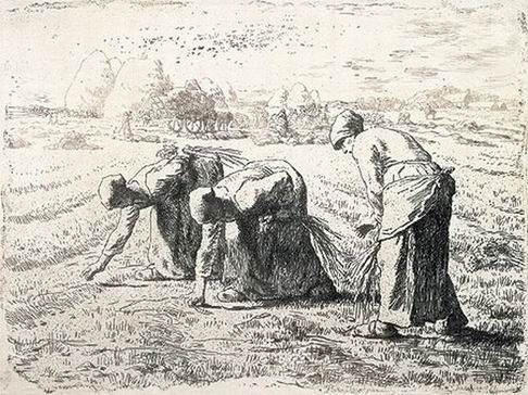 在一片麥田收割完之後,有三位貧窮的婦女,