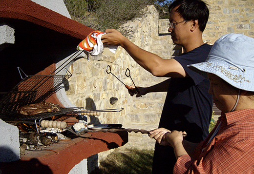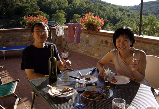 結果呢,我們的房東尚雷諾(他像極這個法國名演員,也難怪Luc Besson讓他在【碧海藍天】裡演義大利人),不僅無限量提供頂級橄欖油,還奉送一瓶自家釀造的紅酒,而當我們看到院子裡那烤爐的時候,我的口水就不爭氣的、無法克制的奔流下來!我們可以自己炭烤Fiorentina大牛排囉,超大一片,在Sienna的coop超市才12歐!真是便宜(上館子的話,嘿嘿),一位好心的當地人告訴我們一定要用烤的才夠香夠道地,只需稍稍調味即可,果不其然,鮮嫩彈牙汁美到不行!但真的是超大塊,連我們暴食四人幫都克不完!