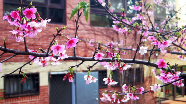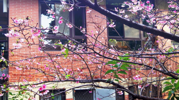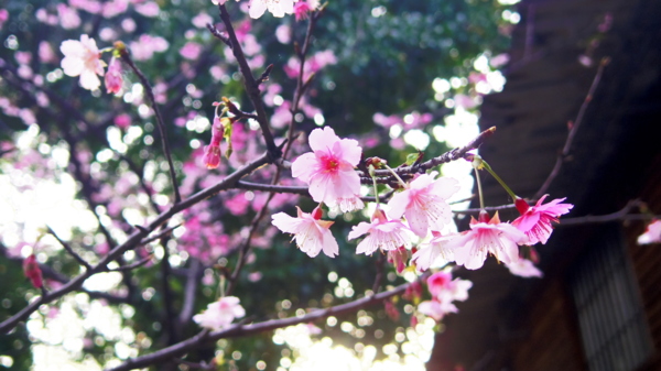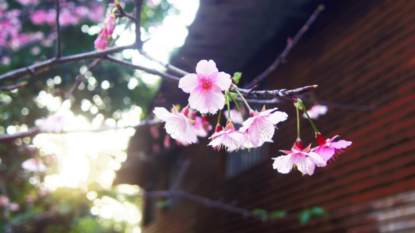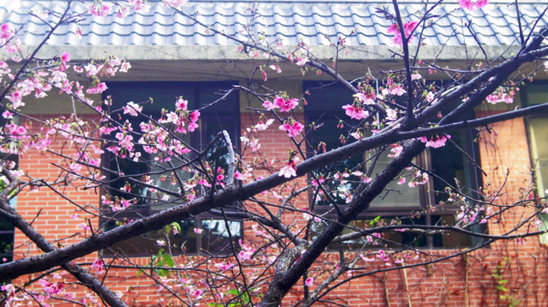 西蓮淨苑的建築當櫻花背景多了幾分復古美