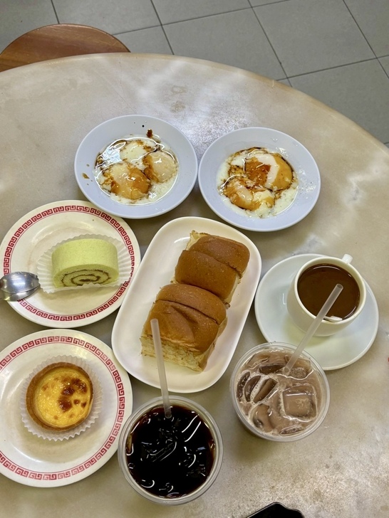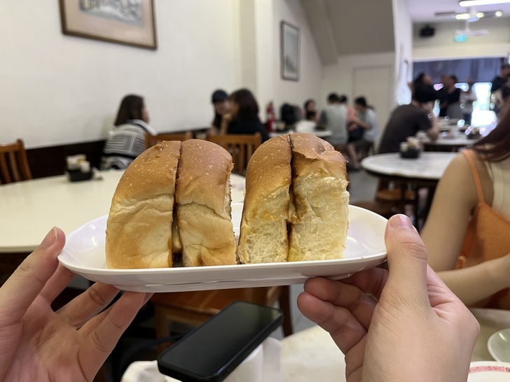 咖椰麵包和其他家吃過的不太一樣 烤得酥脆內鬆軟的麵包 抹上咖椰醬和一小塊牛油 口感很棒 (不喜歡沾半生雞蛋吃 可以選擇單點)