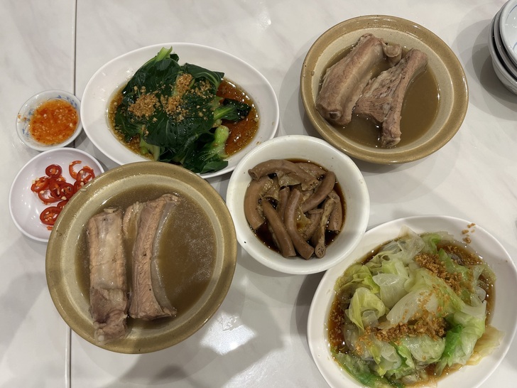 我們點了肉骨茶 滷粉腸 和兩盤燙青菜
