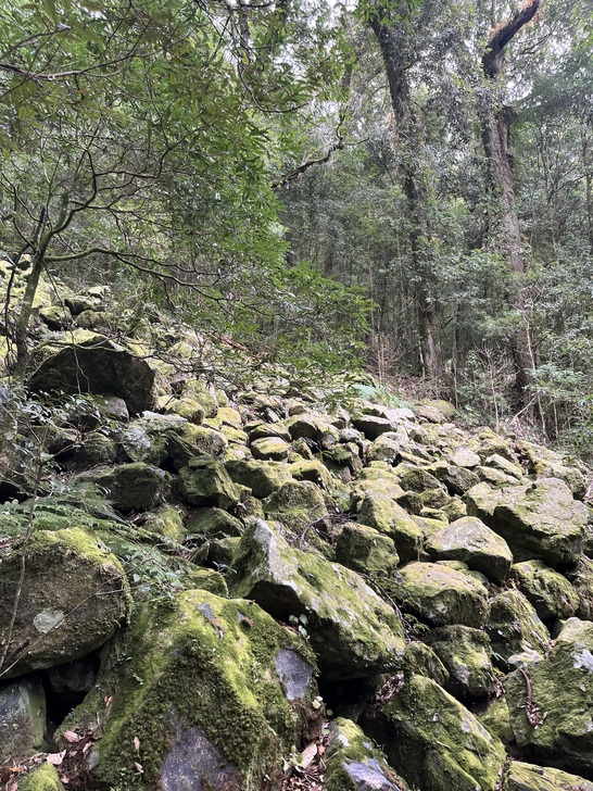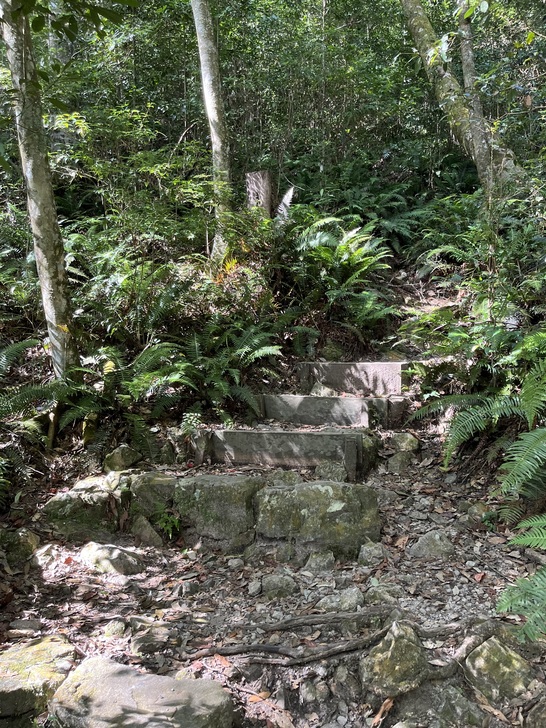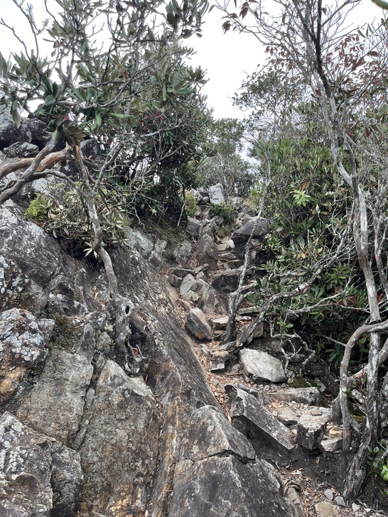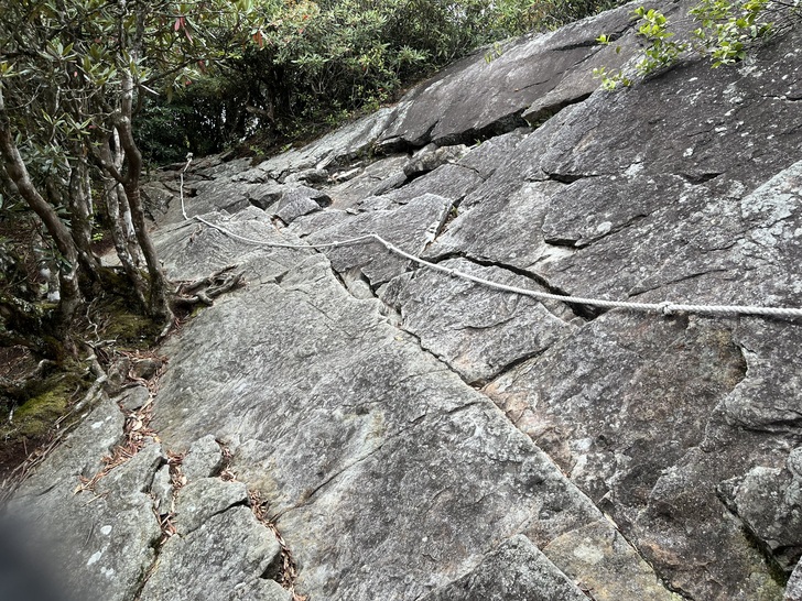 觀景台之後就是這樣的石頭路 碎石段走起來就有一點吃力 部分路段還有拉繩輔助