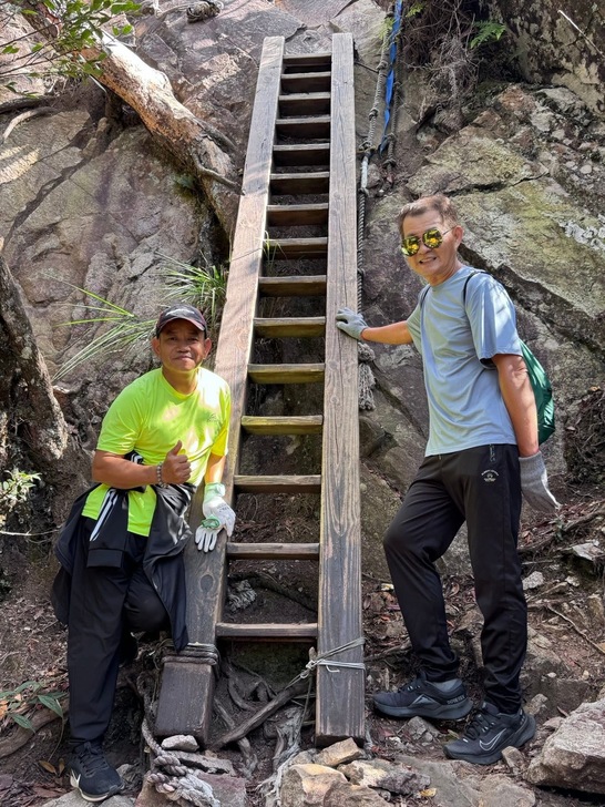 除了壯麗的岩壁之外 這座木梯是鳶嘴山著名的打卡點