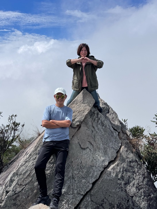 朋友燦爛的笑容 是山頂上那道美麗的風景