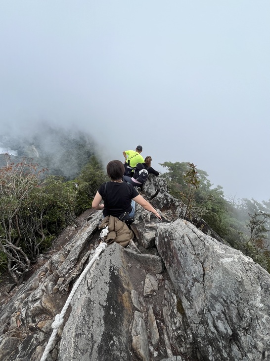 攀上第一個岩壁 霧竟然來了...山上的天氣就是這樣說變就變...
