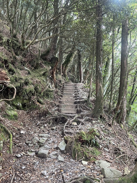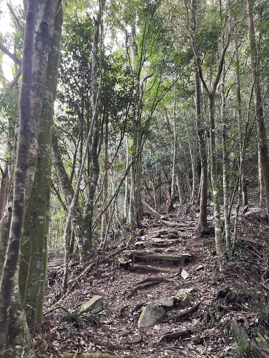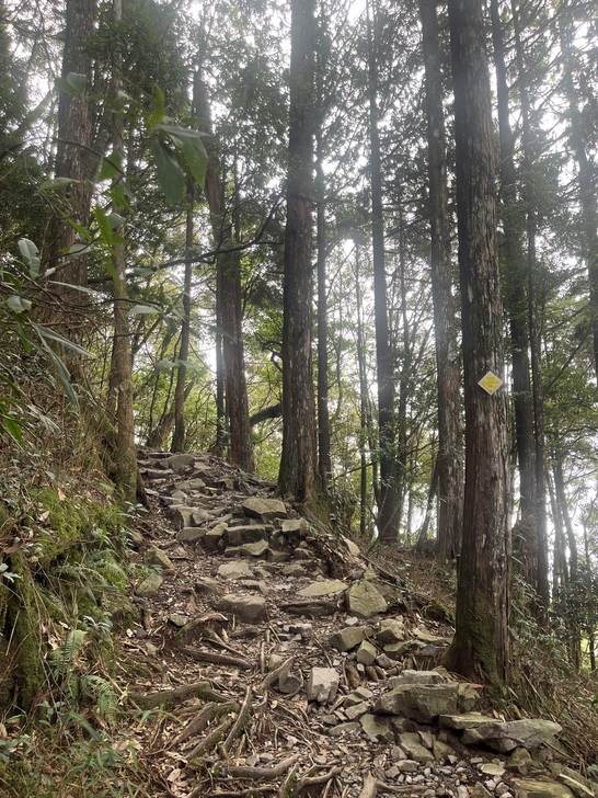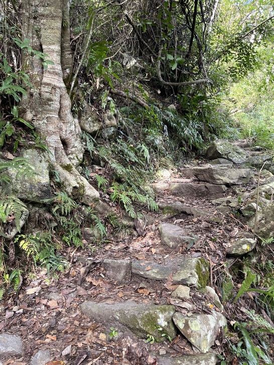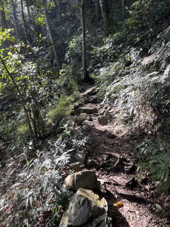之字型石頭路 一開始就是狹小的陡上路段 到了0.5K 這時候也已經汗流浹背