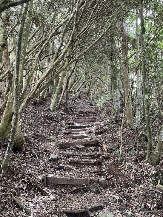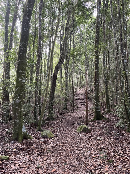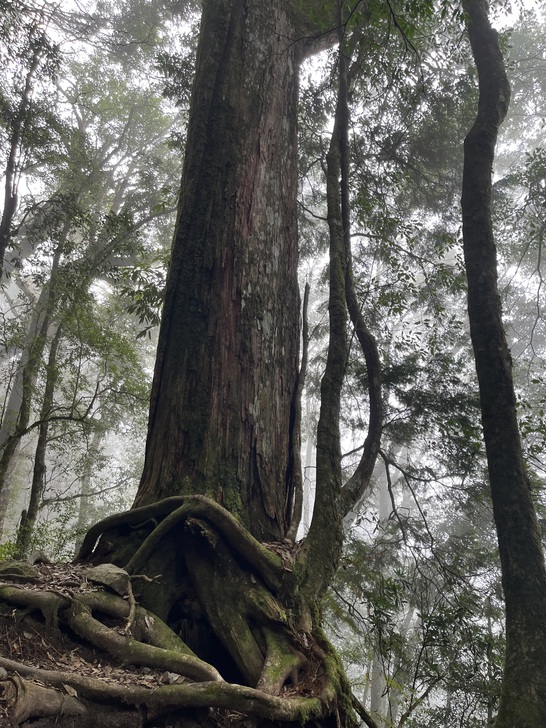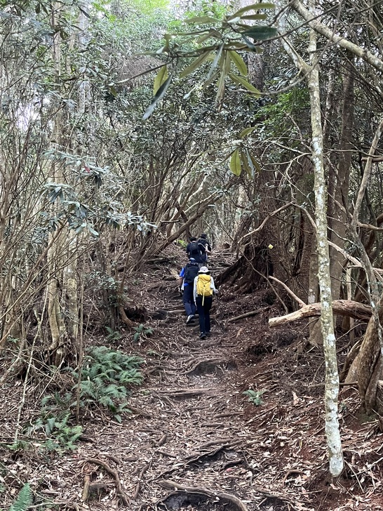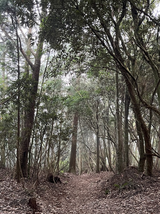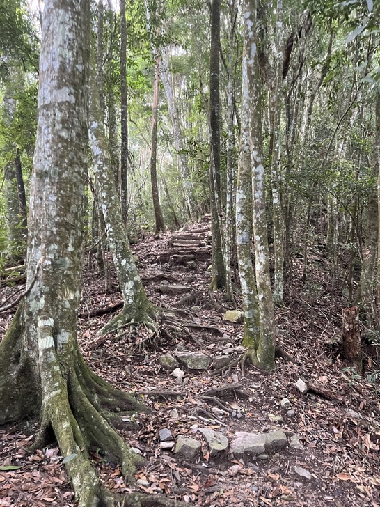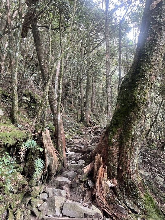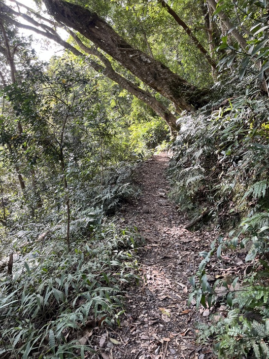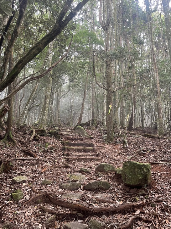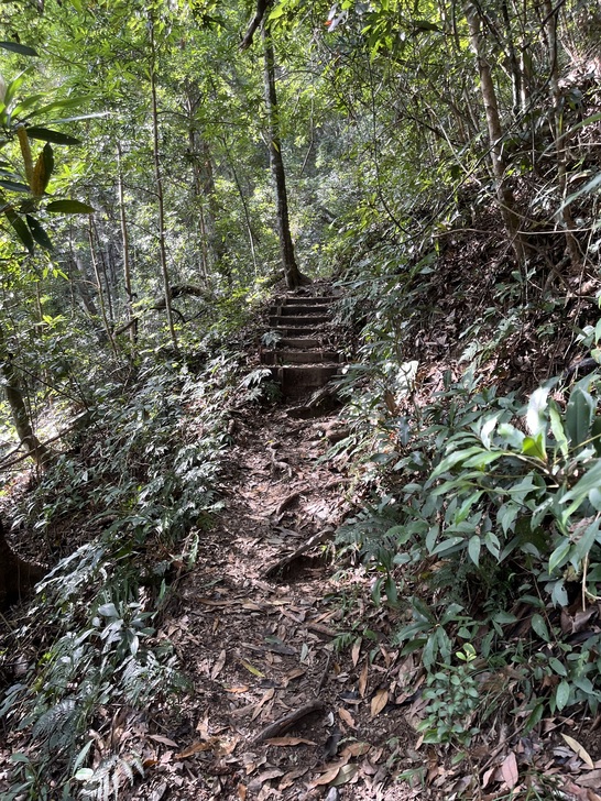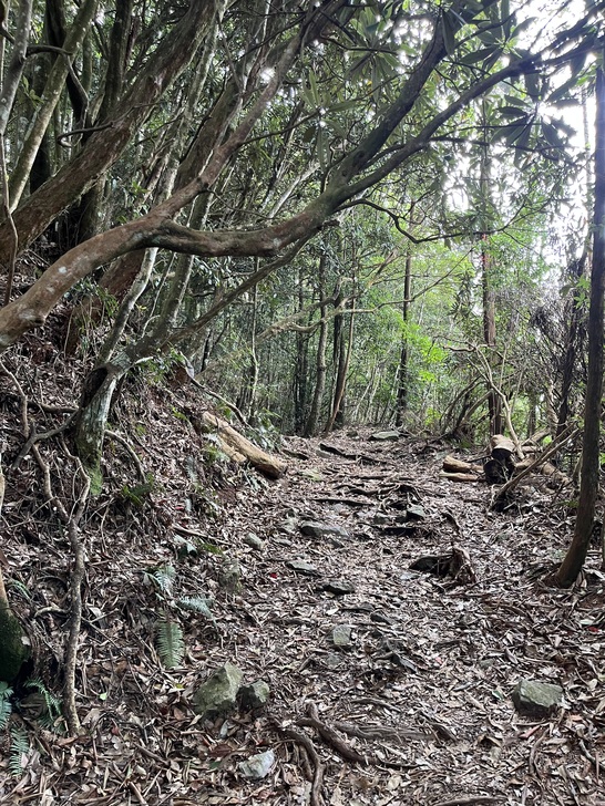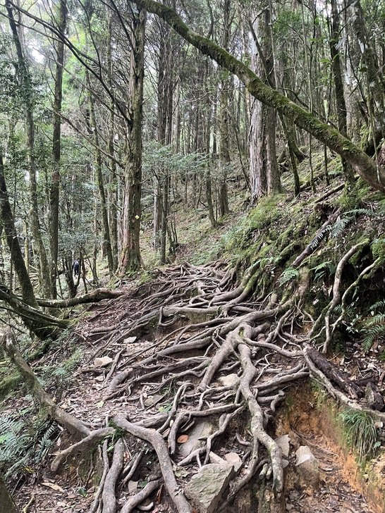 這一段路較平緩 不過沿路盤根錯節 要注意腳下安全 一不小心就會被樹根絆倒