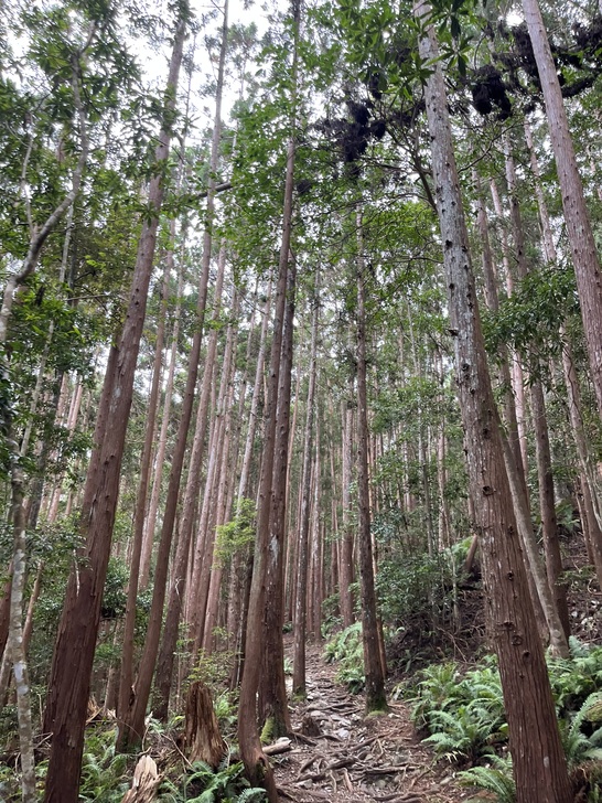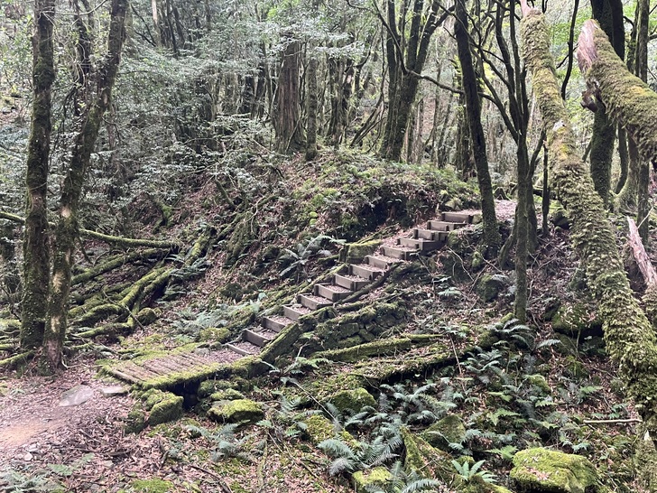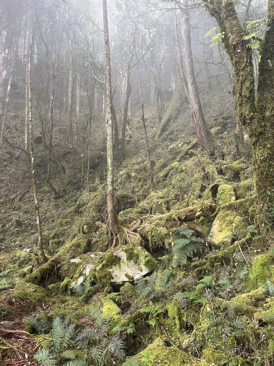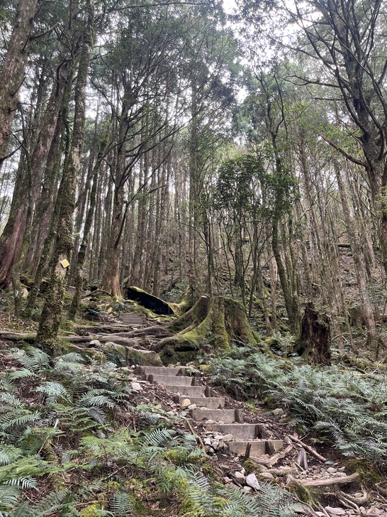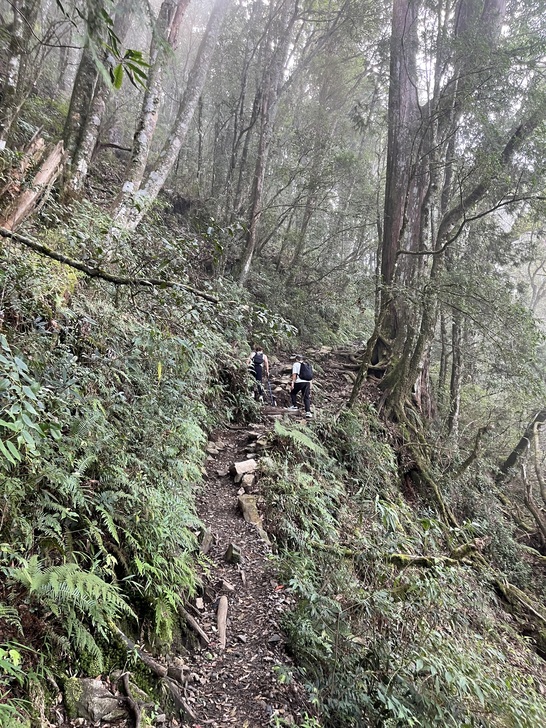 樹蔭遮天 陽光照射不進林間 八仙山步道潮濕 很多山友都是穿著雨鞋行走