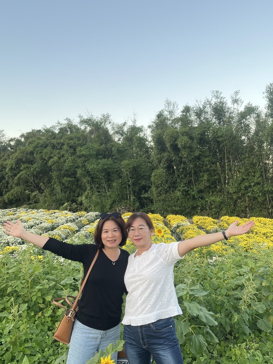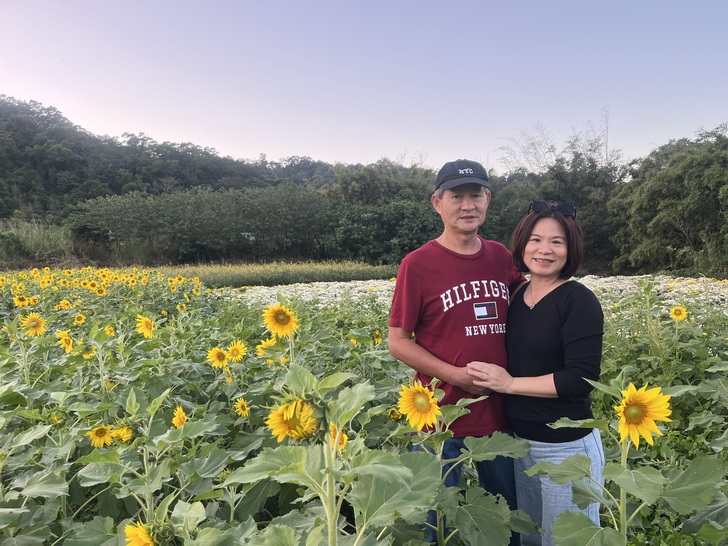 夕陽西下 這裡幾乎沒有遊客 整座菊花田 向日葵花田 由我們四人獨享 實在太幸運了!
