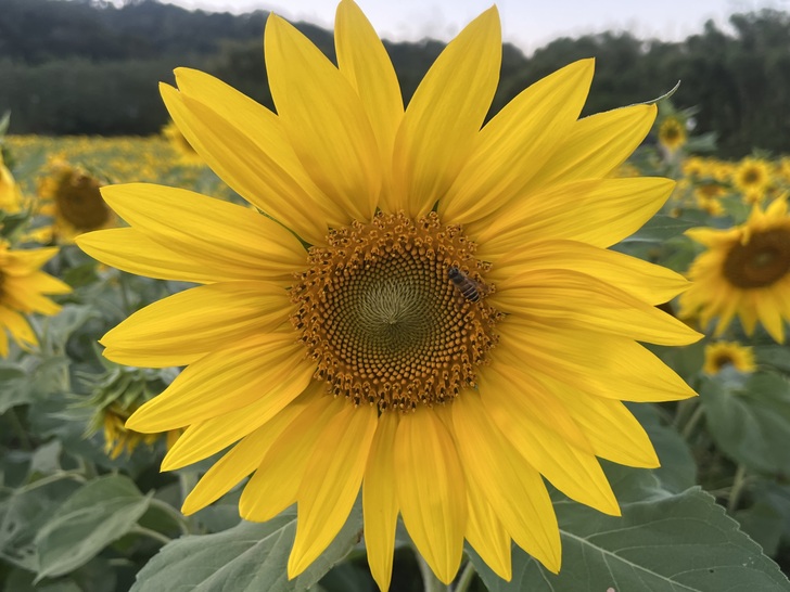 今天下午才出門 冬日天黑得早 回程巧遇向日葵花田 這一片金黃花海帶來很大的歡喜