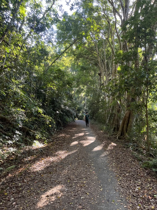產業道路 時而平緩 時而陡坡 所幸沿途林相優美 蟲鳴鳥叫 邊走邊聊也很有趣