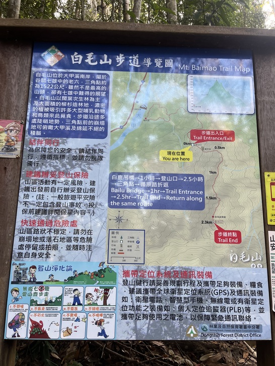 白毛山步道全長2.3公里 整個山徑都是上坡 約2.5小時會到達三角點