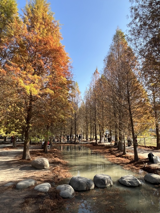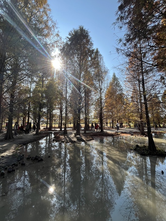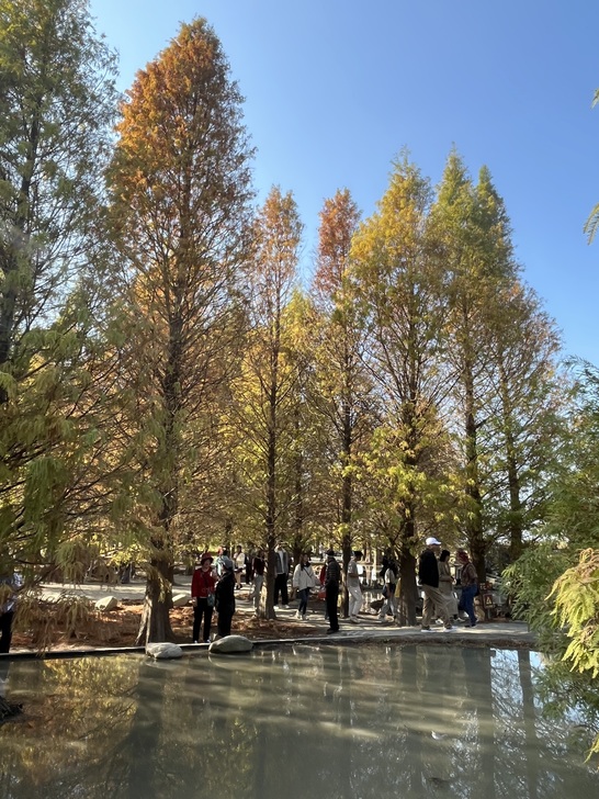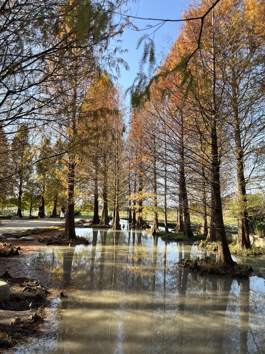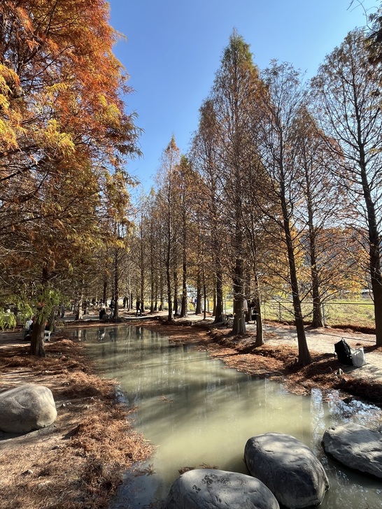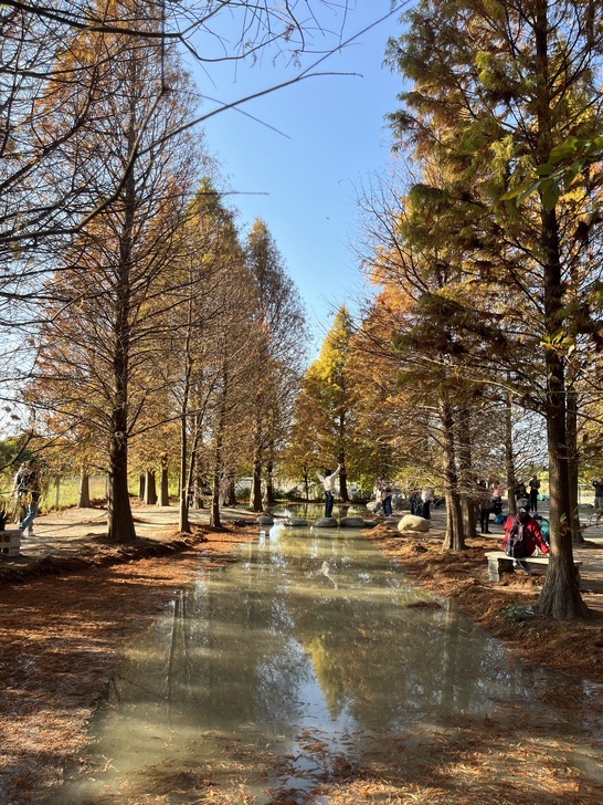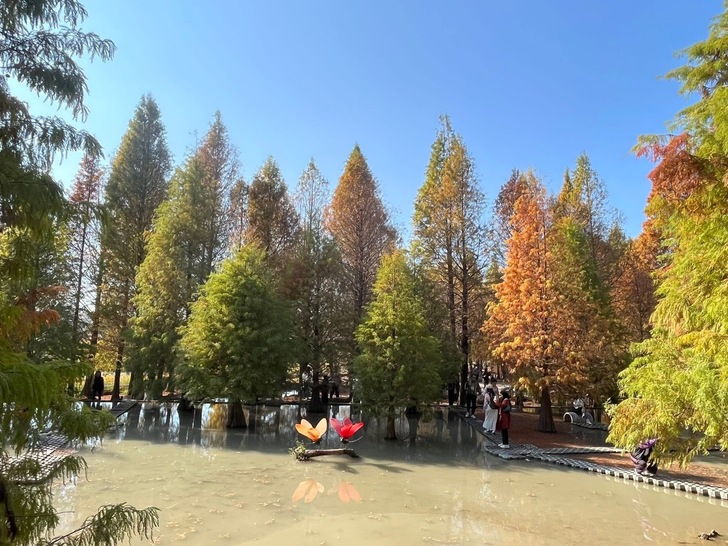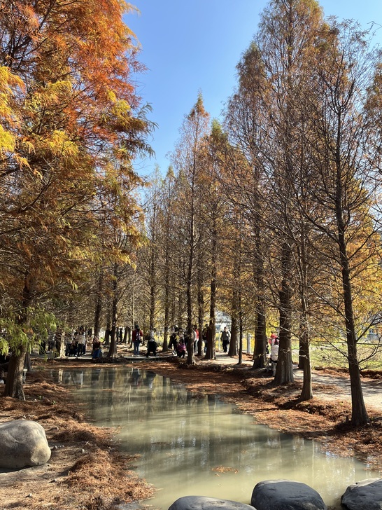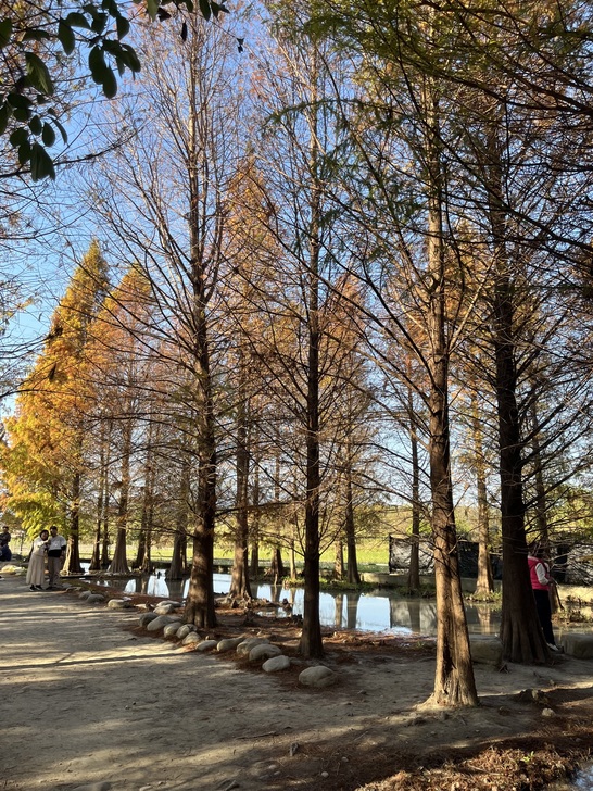 又是追逐落羽松顏色轉換的季節,樹葉由綠轉黃轉紅,層次感充滿了夢幻。