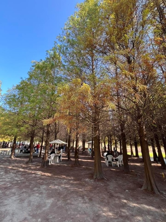 還沒有入園 光從外圍看 成排轉黃的落羽松就已經很漂亮