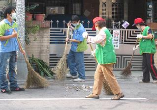 大家戴上帽子、口罩和手套,個個拿著竹掃把認真的模樣,真是令我感動…年輕人的熱情洋溢在發亮的眼神中,熱情的心溫暖了這個有點寒氣的冬季清晨。汗水一滴一滴落下,身體也逐漸暖和了起來,時間就在掃把不斷地親吻大地中悄悄流逝……
