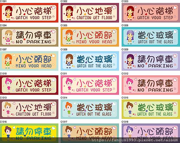 飛盟C系列小心階梯、小心地滑、請勿停車、小心頭部、當心玻璃貼紙