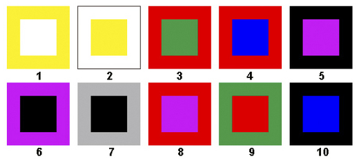 在「馬赫帶」的實驗中,發現兩色相鄰的邊緣,其對比效果更為強烈。歐普藝術經常利用邊緣對比來製造視覺上的效果。