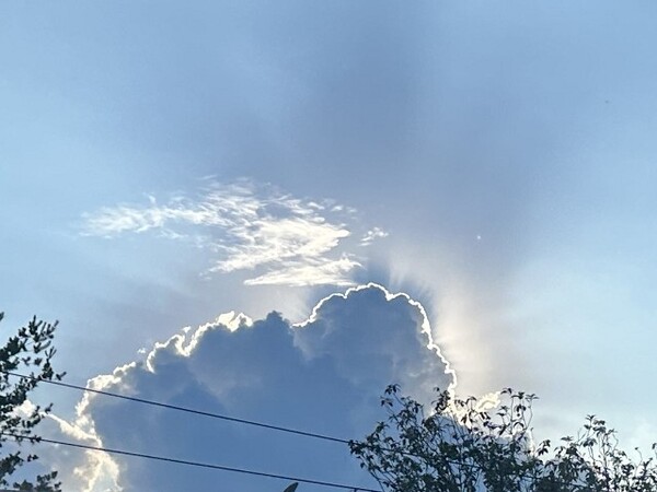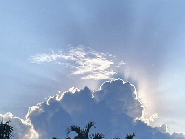 途中巧遇太陽被烏雲遮住顯現的光芒、很難得看到的景觀