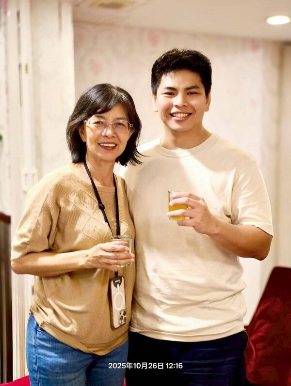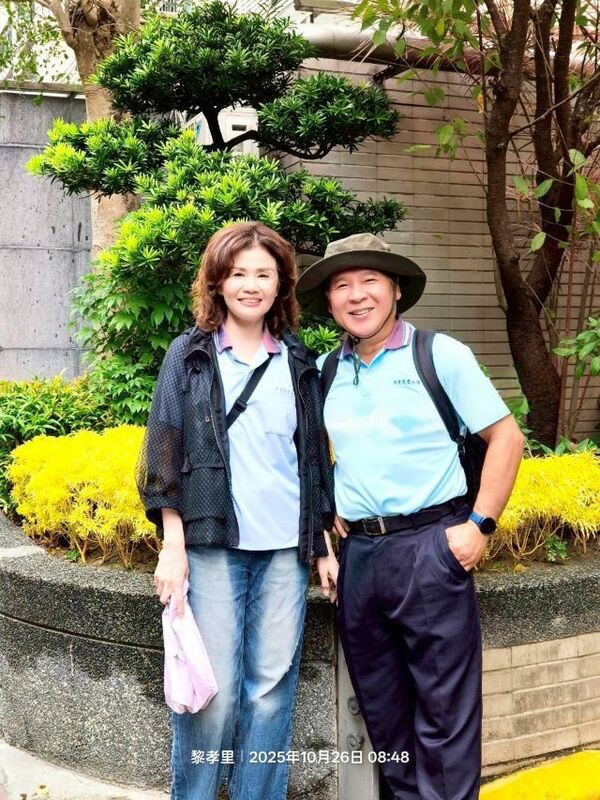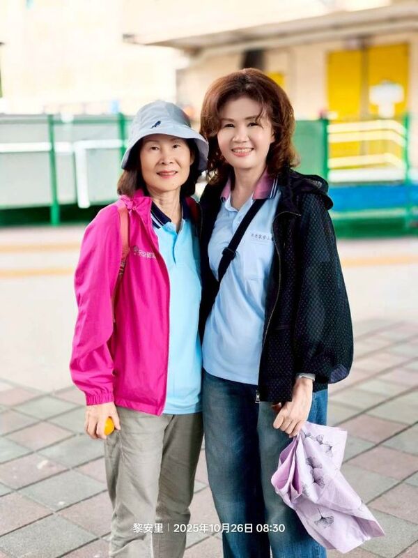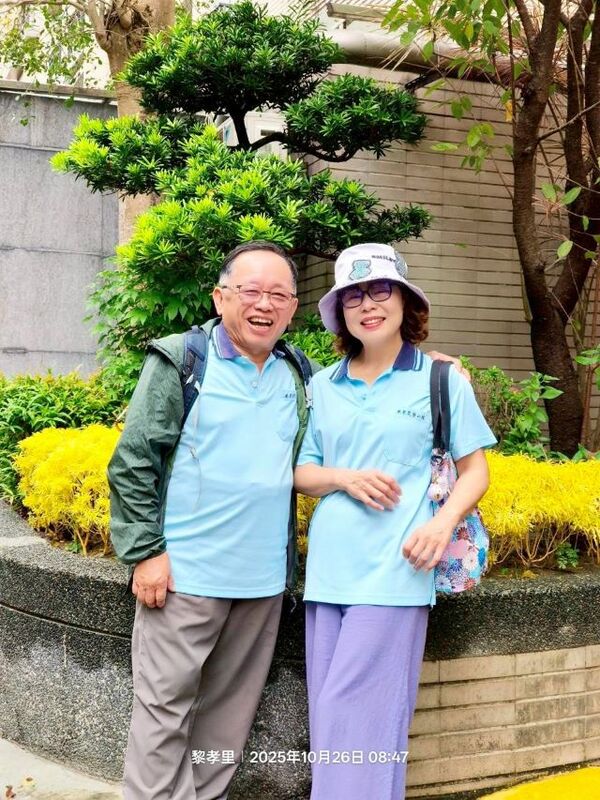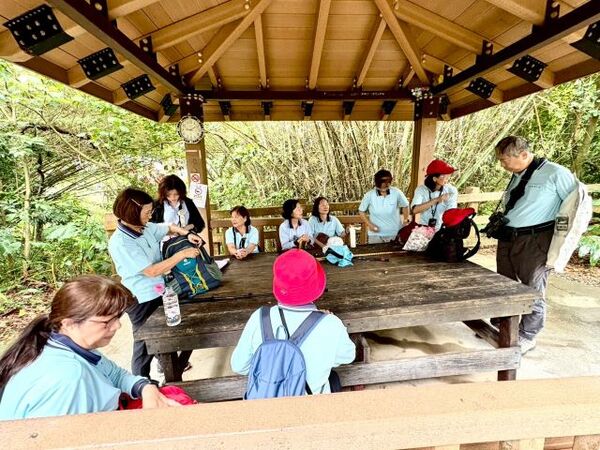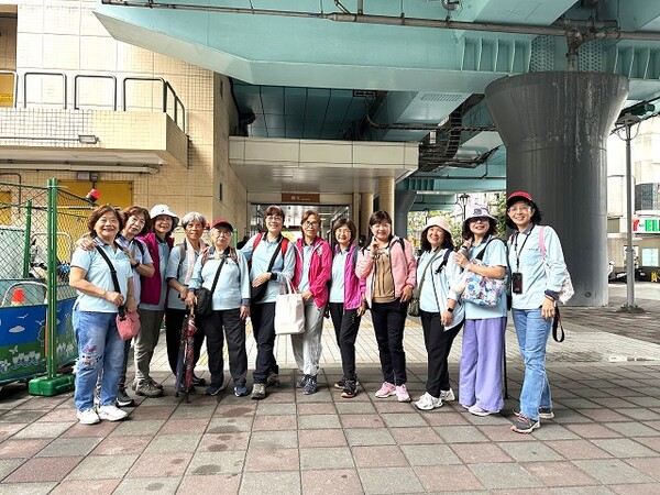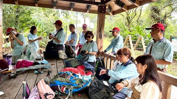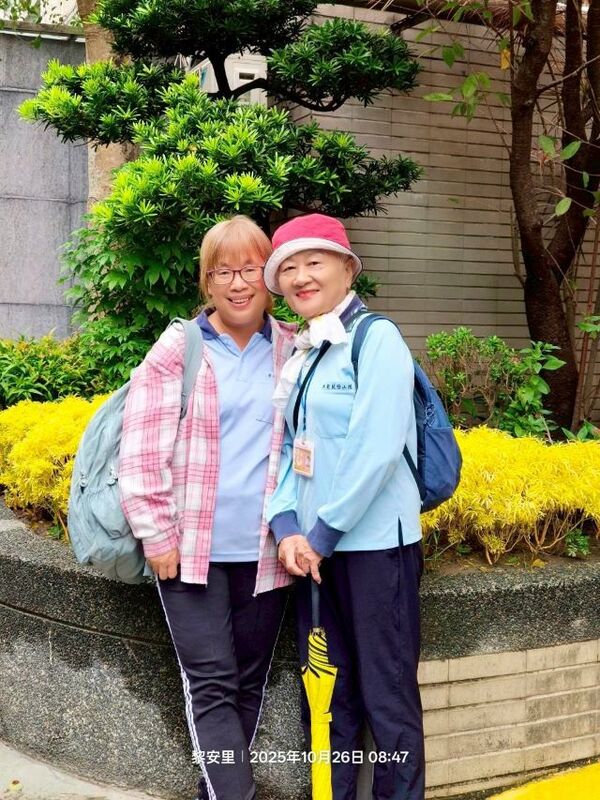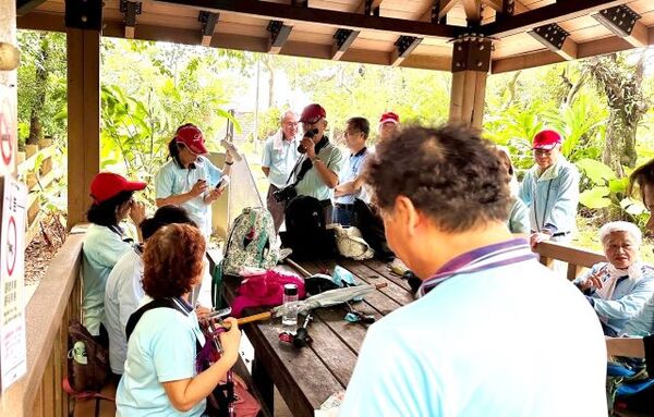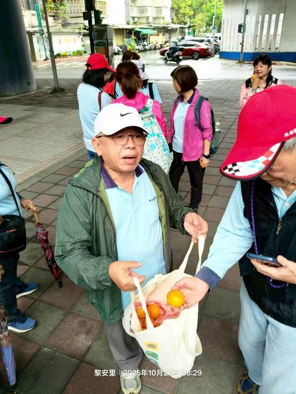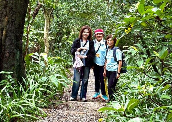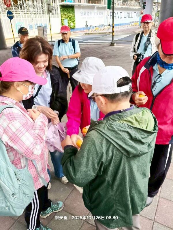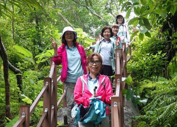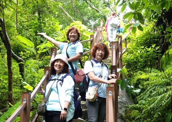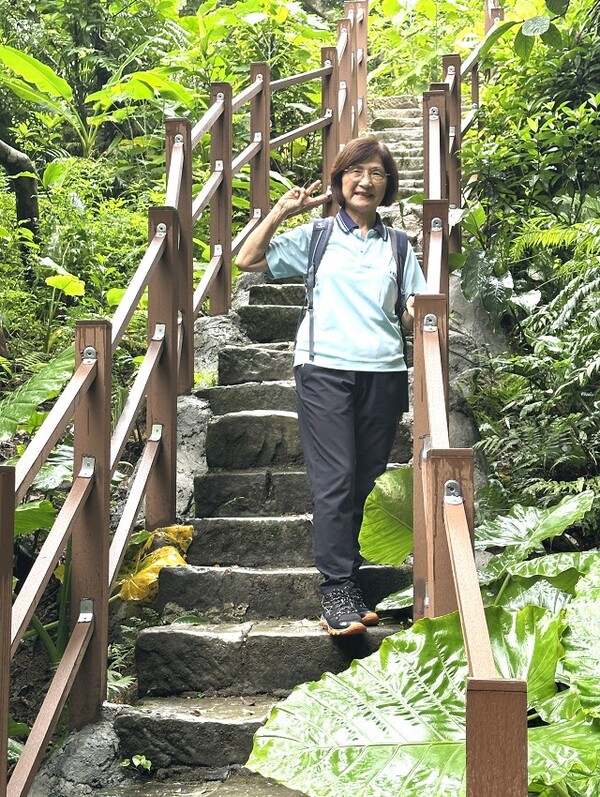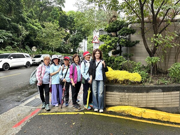 此時李老師在觀景台帶動成員活動筋骨