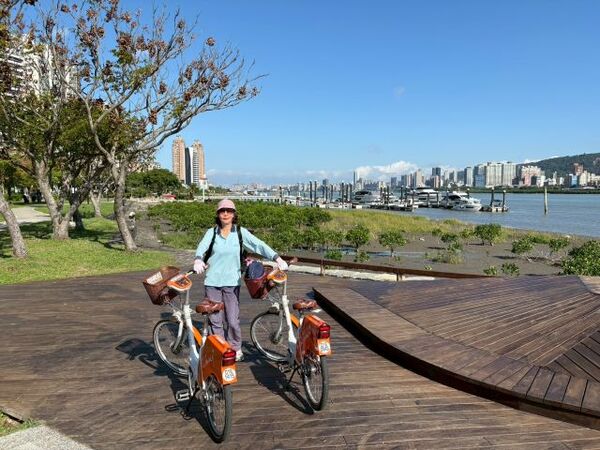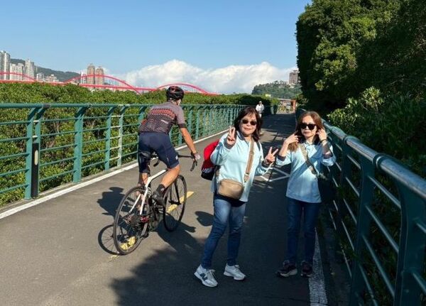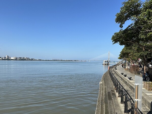 續行河邊自行車、人行道往竹圍淡水方向前行