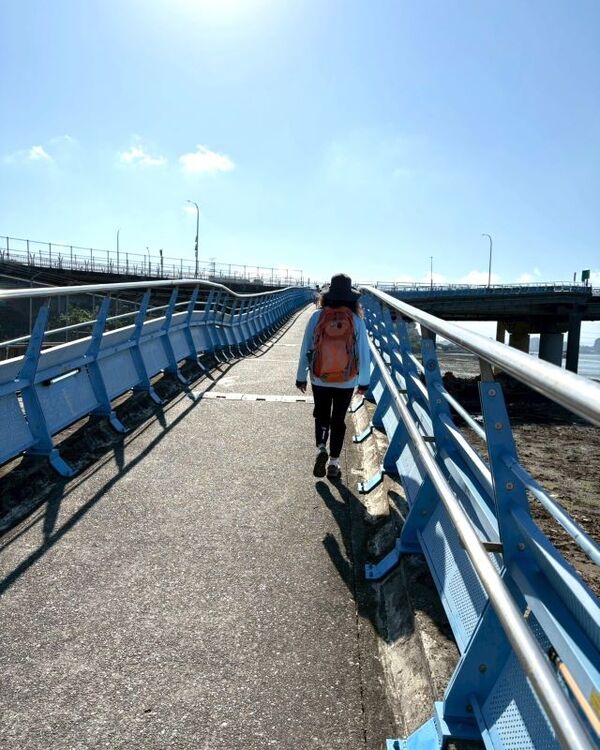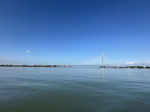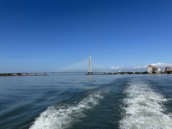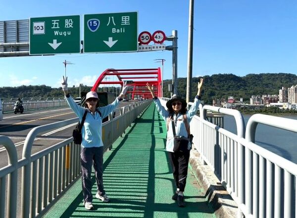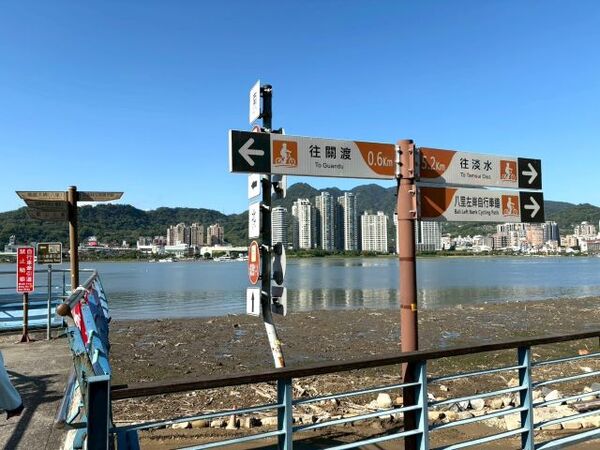 進入上「關渡橋自行車牽引道」往八里方向前行