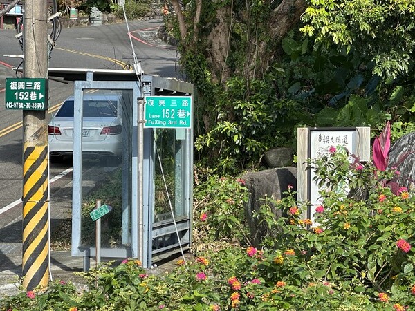 09:23抵達復興路三段152巷邊「鳳梨廣場涼亭」稍事停留